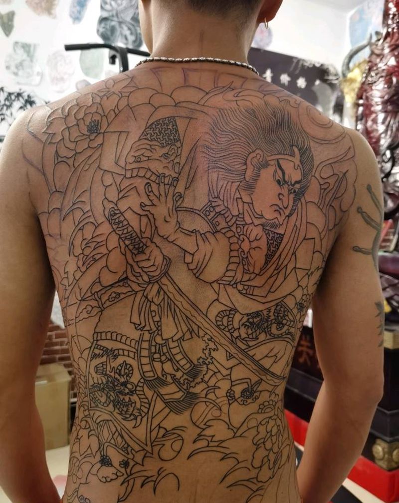 老传统满背,很多细节未完成,等纹身图片_背部纹身图案