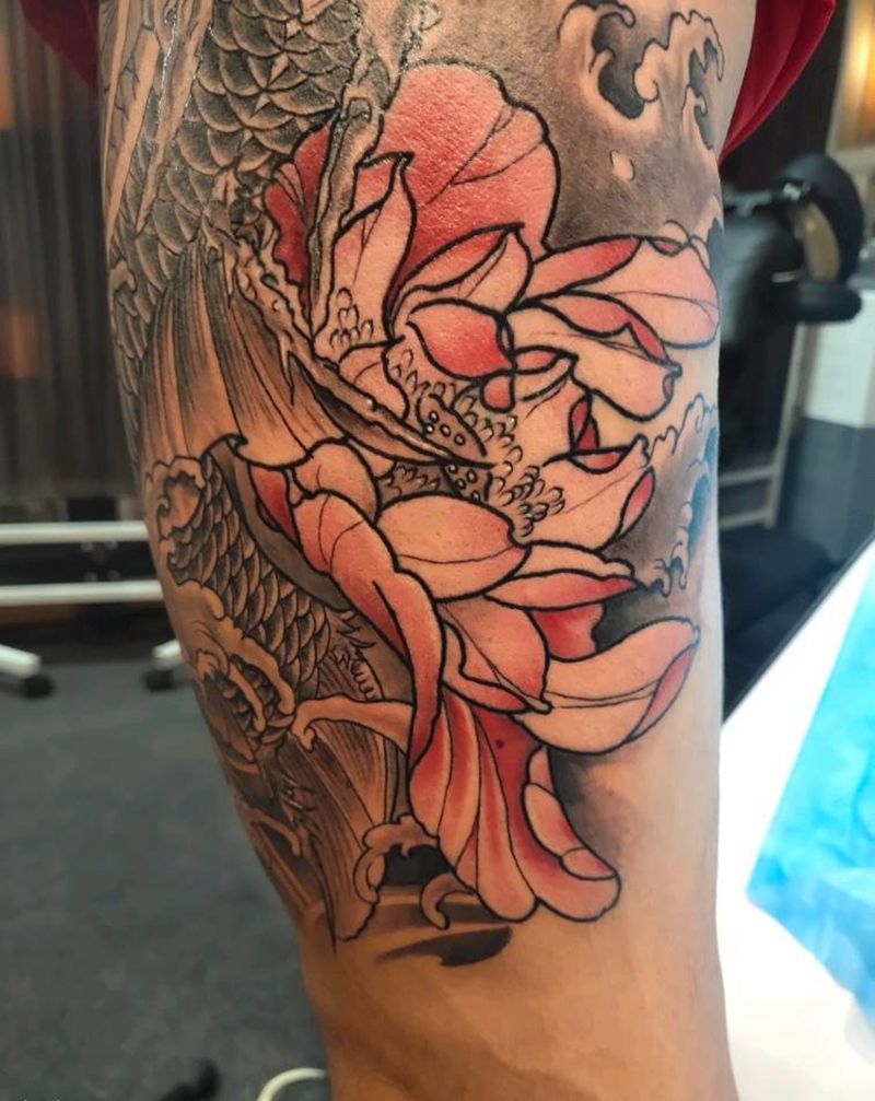 • T网红王老大花腿龙纹身图片_腿部新传统纹身图案