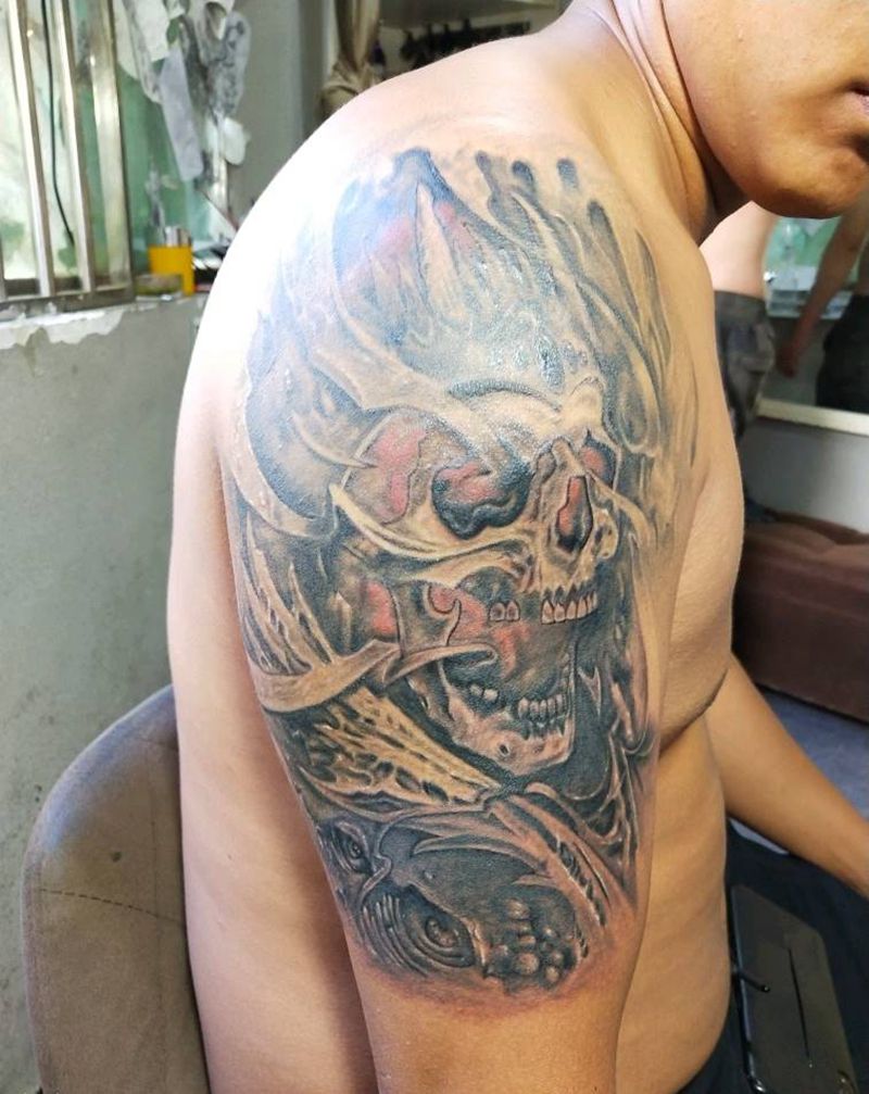 • 纹身吧推荐的披肩图腾半胛纹身图案作品展示