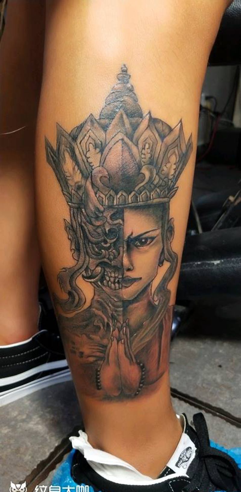 • T网红王老大花腿龙纹身图片_腿部新传统纹身图案