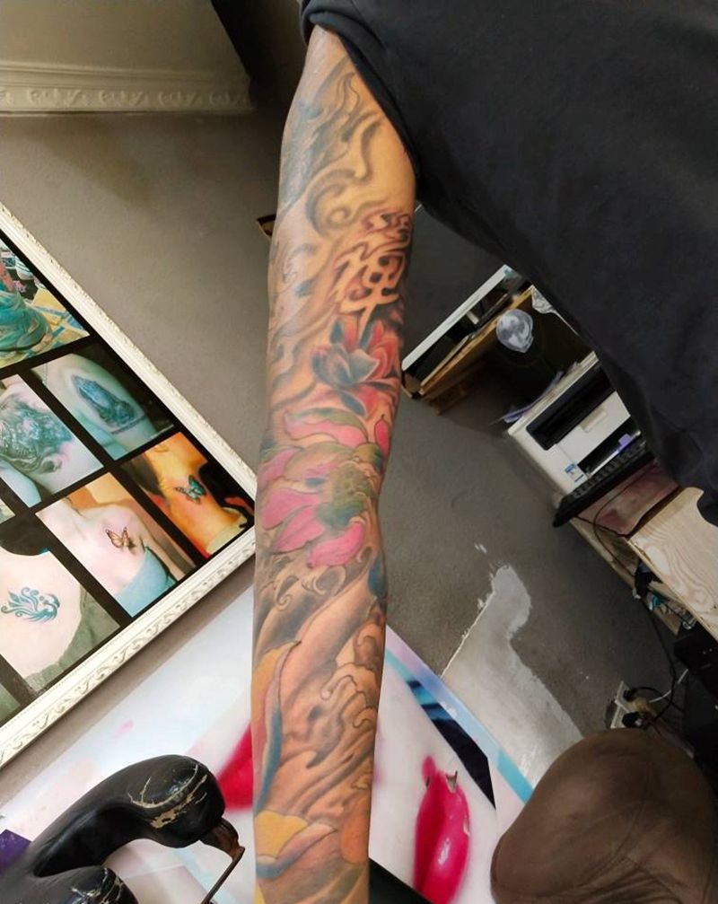 当前位置: 首页 >贵州省黔西南布依族苗族自治州纹身店-飞燕纹绣纹身工作室纹身图案>花臂彻底竣工纹身图片_手臂纹身图案