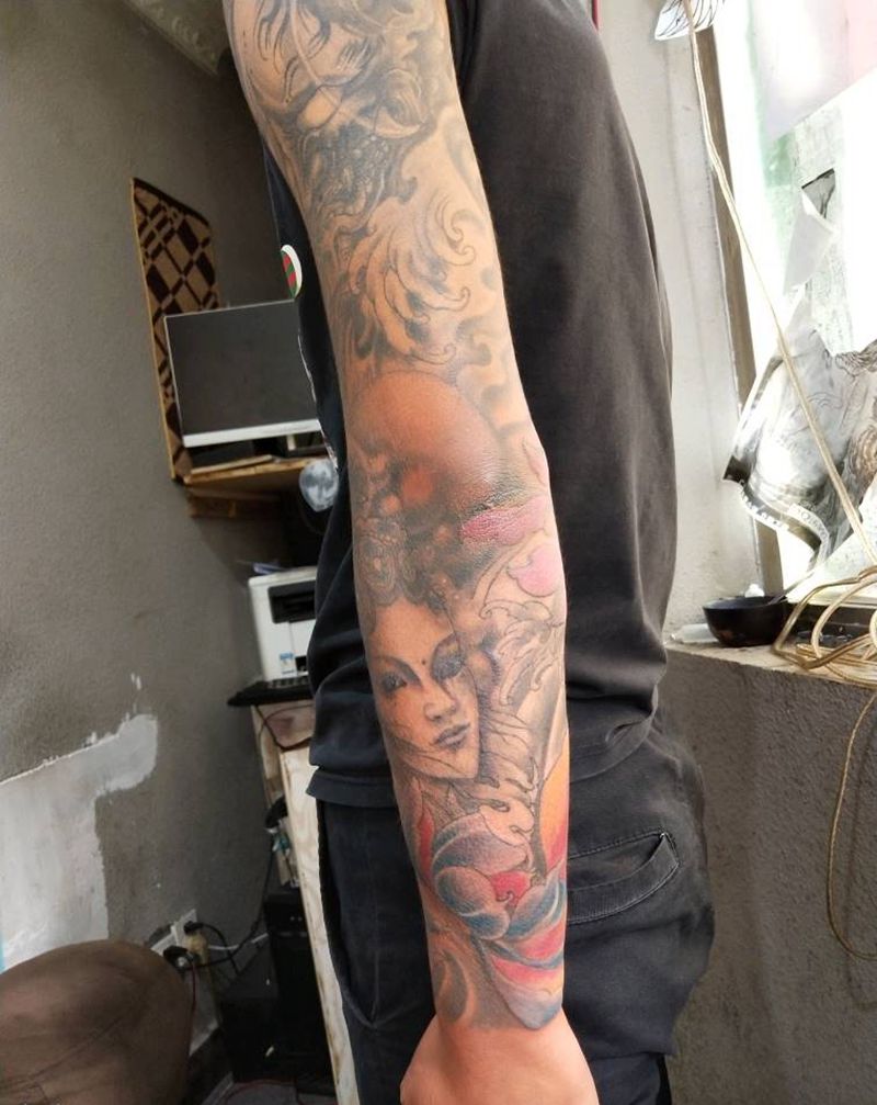当前位置: 首页 >贵州省黔西南布依族苗族自治州纹身店-飞燕纹绣纹身工作室纹身图案>花臂彻底竣工纹身图片_手臂纹身图案