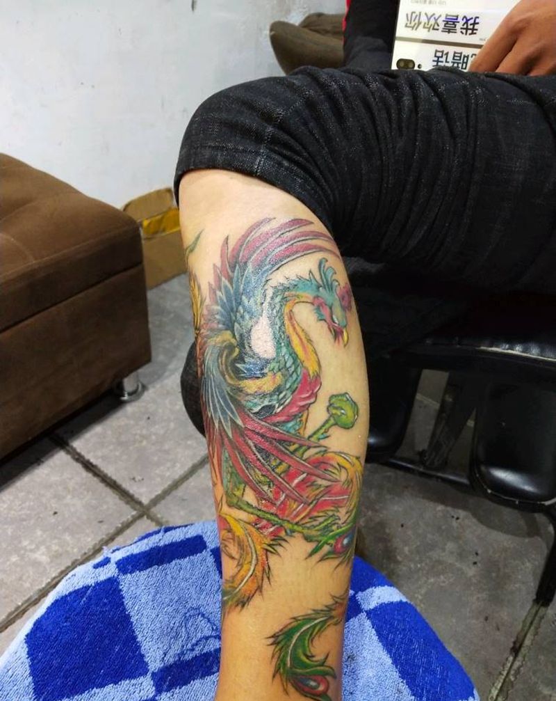 • T网红王老大花腿龙纹身图片_腿部新传统纹身图案