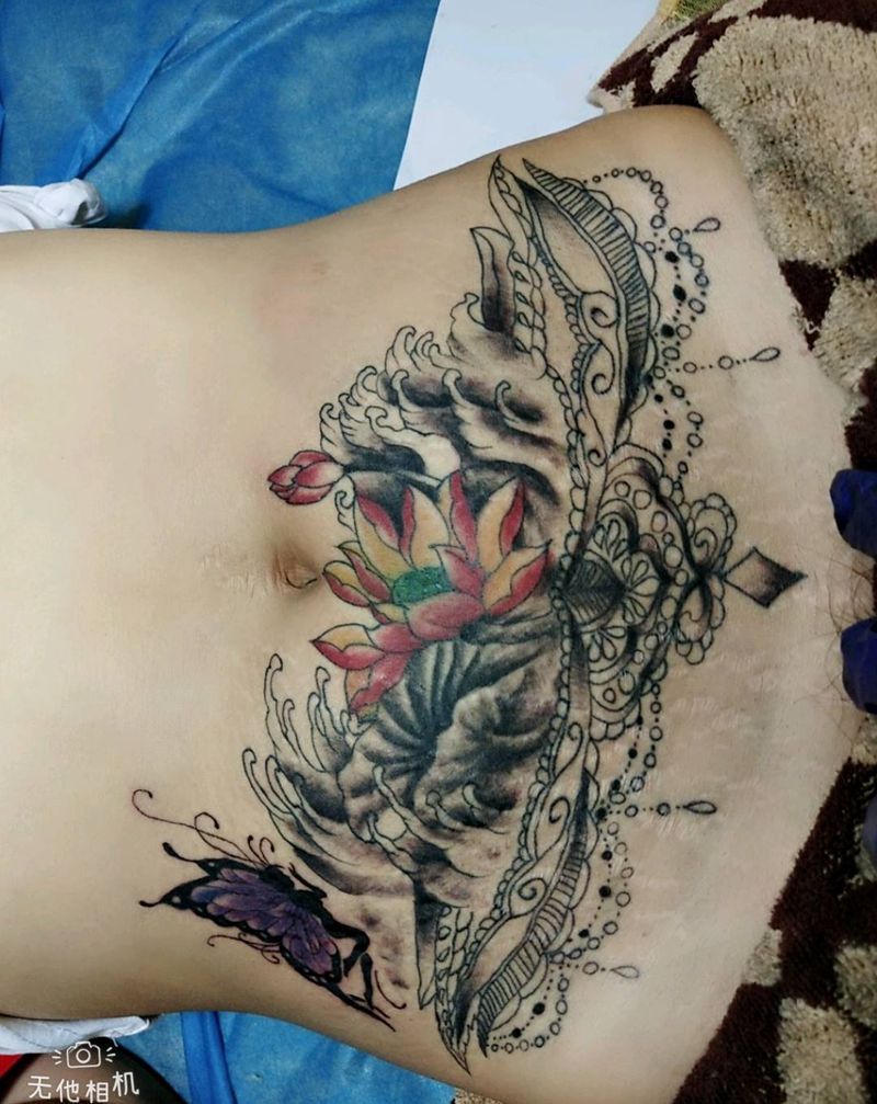 • 时尚性感的腹部莲花纹身图案