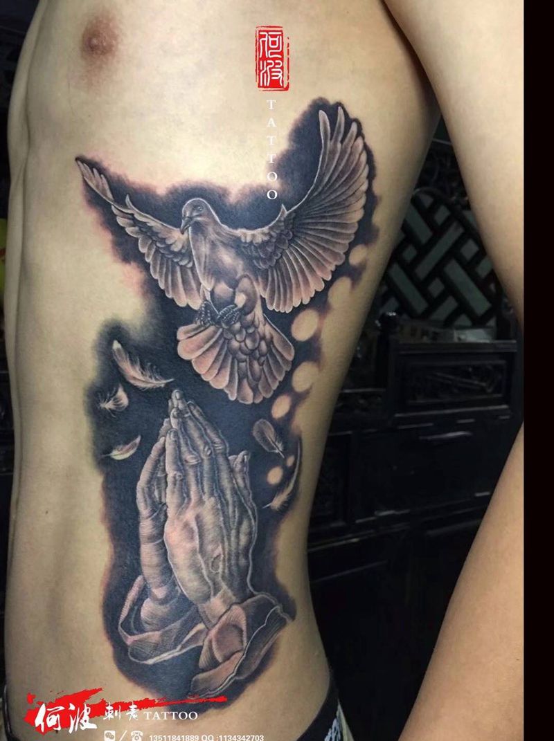 祈祷之手.和平鸽纹身图片