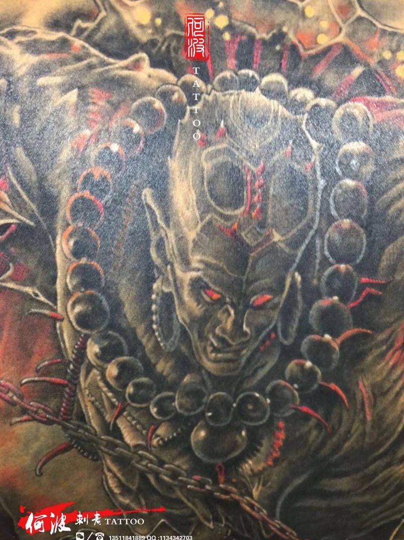 黑灰满背纹身图案