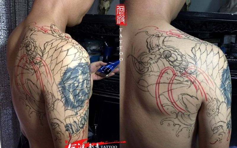 • 纹身吧推荐的披肩图腾半胛纹身图案作品展示