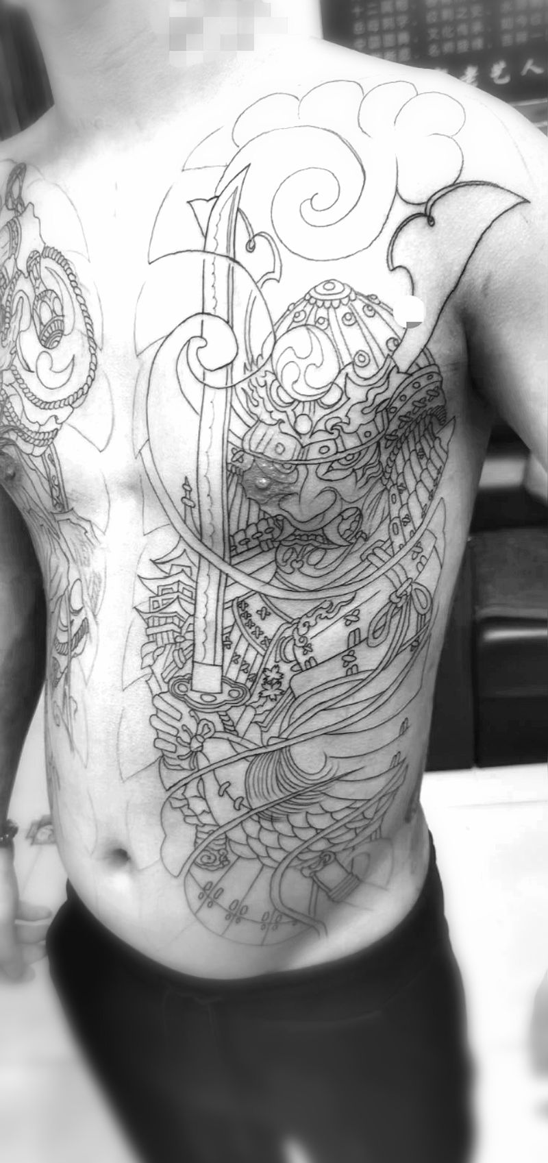 黑灰满背纹身图案