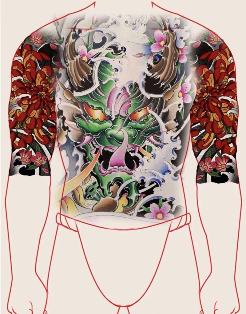 当前位置: 首页 >贵州省黔西南布依族苗族自治州纹身店-老艺人刺青纹身图案>般若纹身图片_背部胸部新传统纹身图案