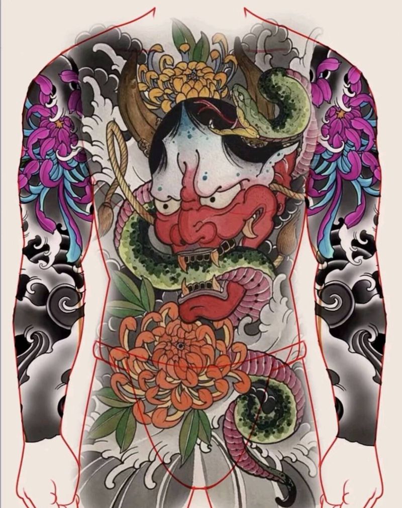当前位置: 首页 >贵州省黔西南布依族苗族自治州纹身店-老艺人刺青纹身图案>般若纹身图片_背部胸部新传统纹身图案