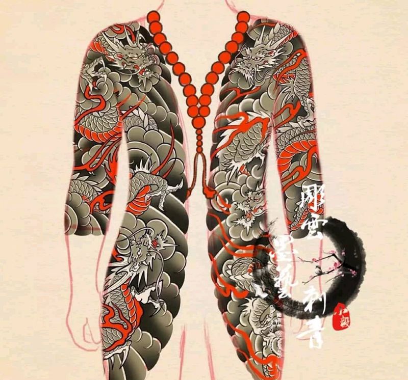 • T云龙九郎纹身图片_背部老传统云龙九郎纹身图案