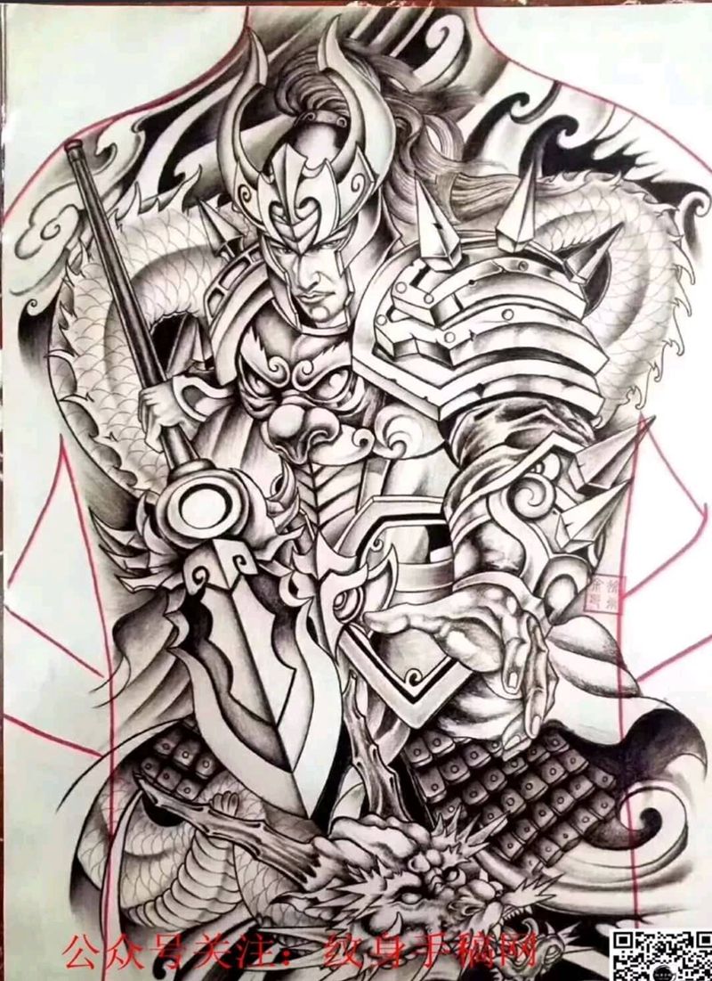 • 黑灰满背纹身图案
