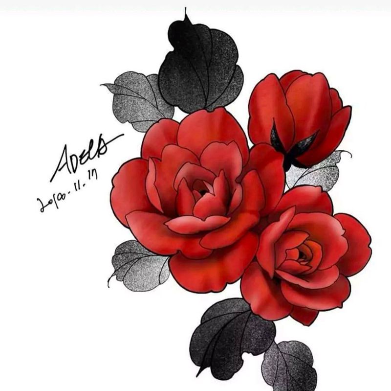 • 手背潮流时尚的玫瑰花眼睛纹身图案