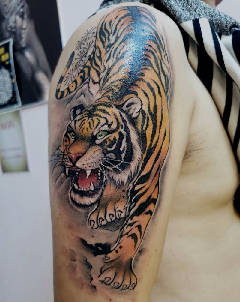 当前位置: 首页 >贵州省遵义市纹身店-粟刺青纹身图案>下山虎纹身图片_手臂老传统纹身图案