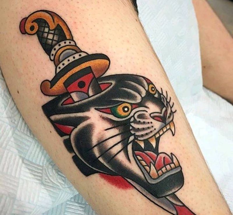 • T包小腿吹火男+阿多福纹身图片_腿部老传统新传统吹火男阿