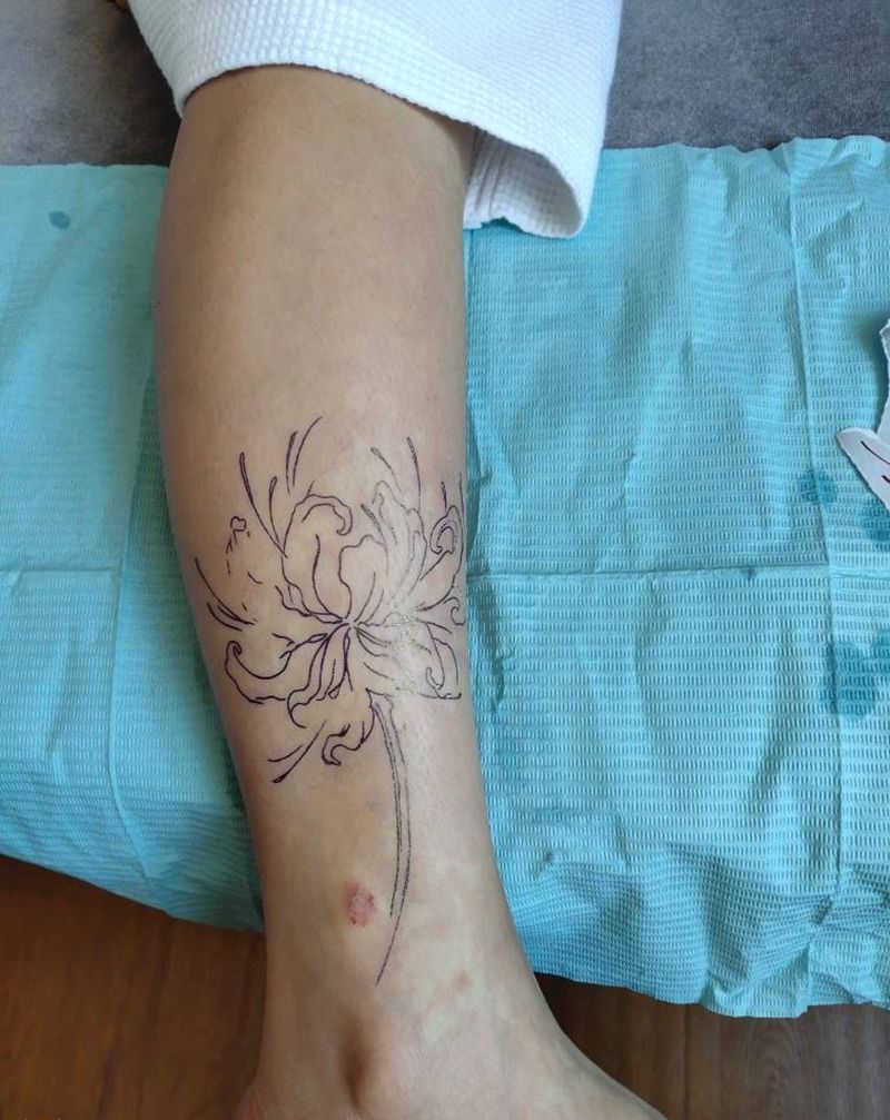 彼岸花纹身图片_腿部脚部新传统水彩纹身图案