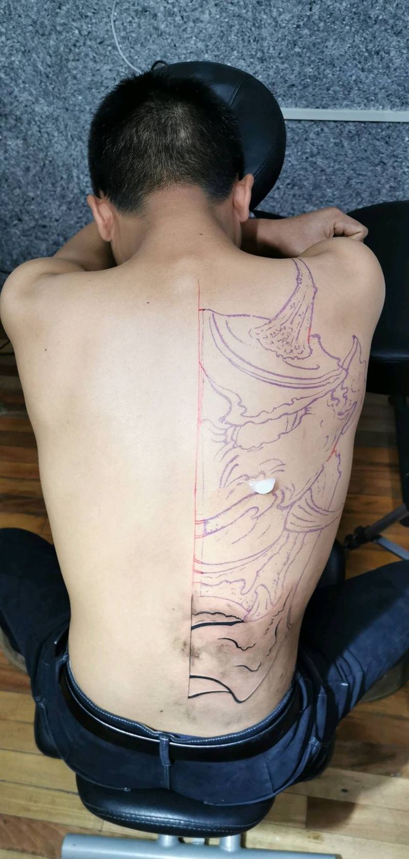 黑灰满背纹身图案