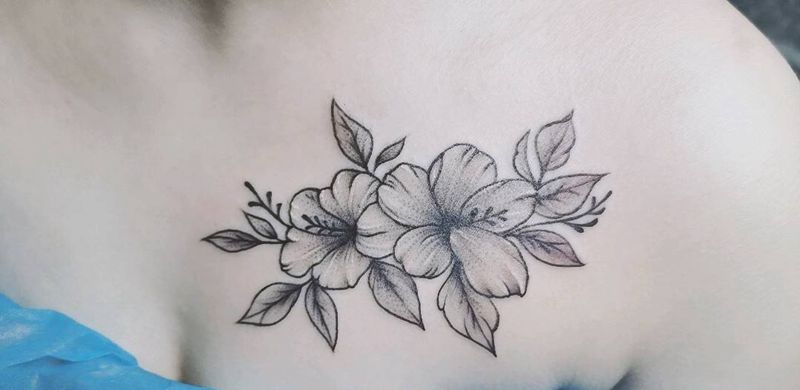 当前位置: 首页 >贵州省遵义市纹身店-粟刺青纹身图案>山茶花纹身图片_胸部手臂新传统欧美写实纹身图案
