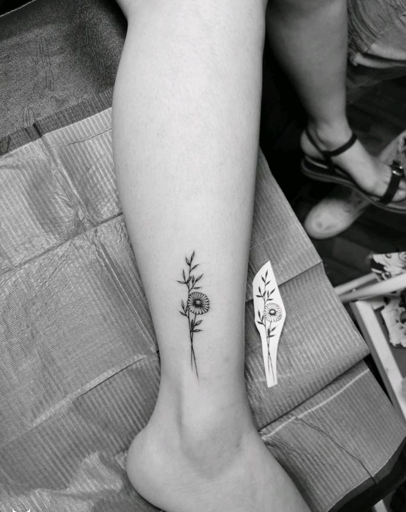 雏菊纹身图片_脚部新传统纹身图案