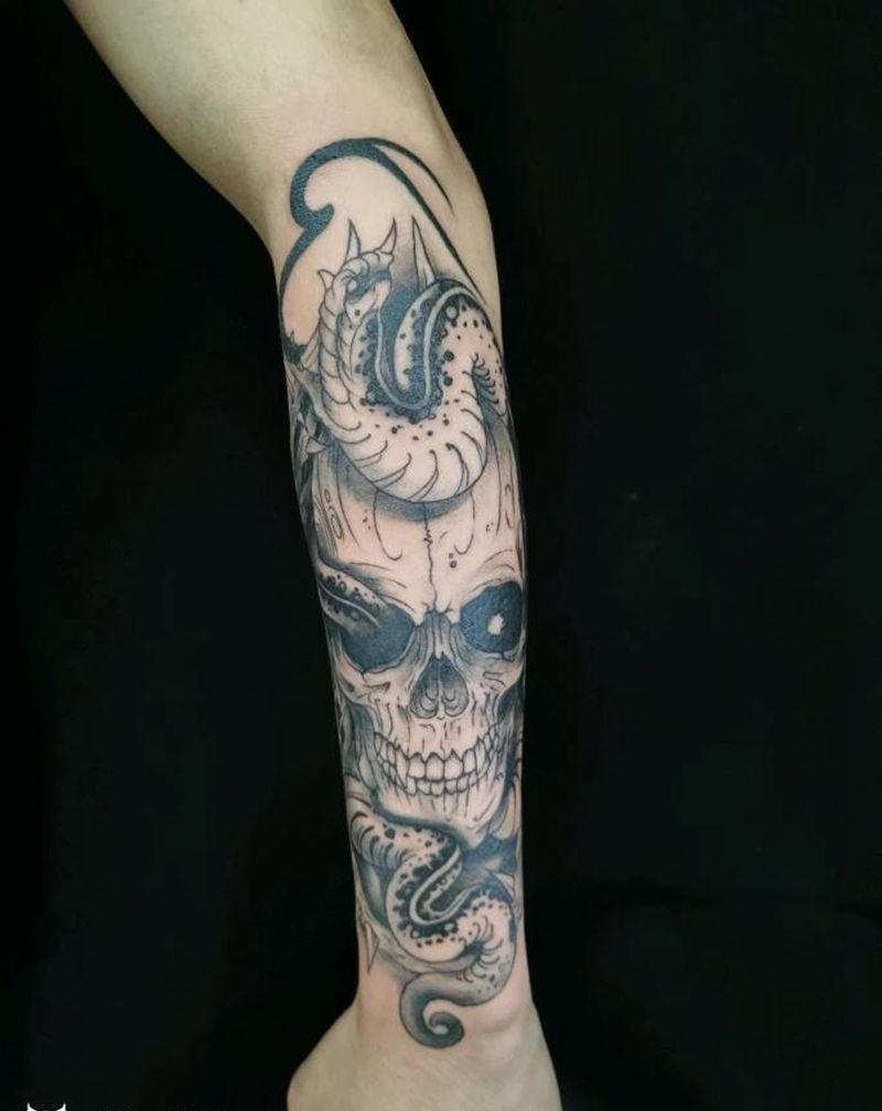 蛇 骷髅纹身图片_手臂新传统纹身图案