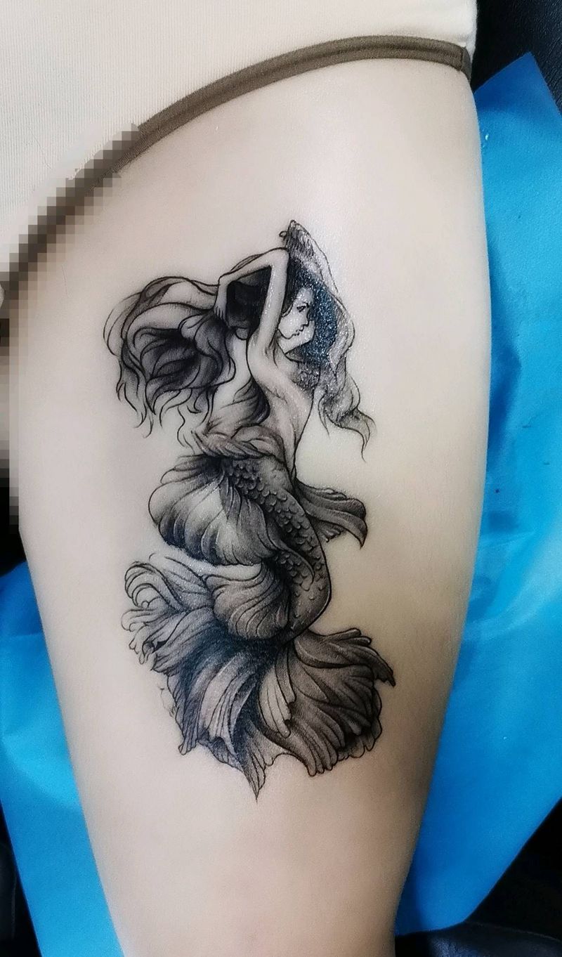 当前位置: 首页 >贵州省遵义市纹身店-粟刺青纹身图案>大腿 美人鱼纹身图片_腿部手臂新传统欧美写实纹身图案