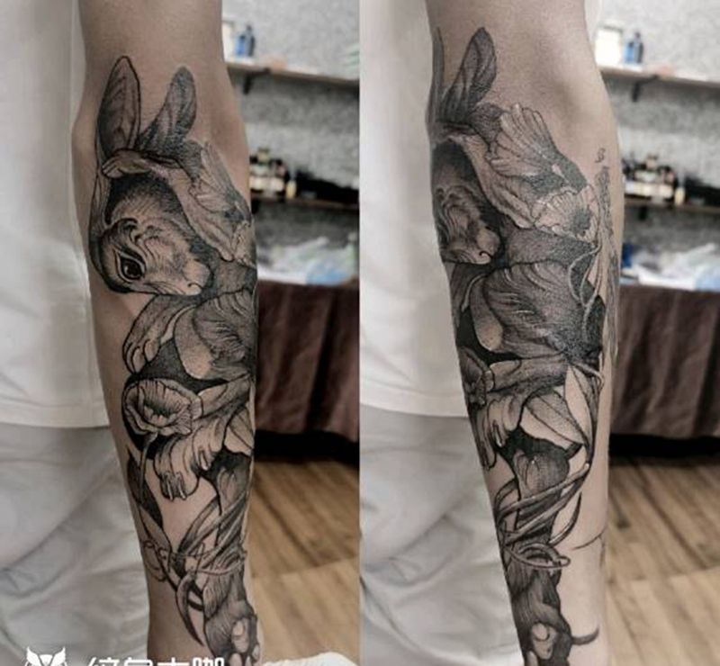 当前位置: 首页 >贵州省遵义市纹身店-粟刺青纹身图案>兔子纹身图片_手臂手部New School点刺纹身图案