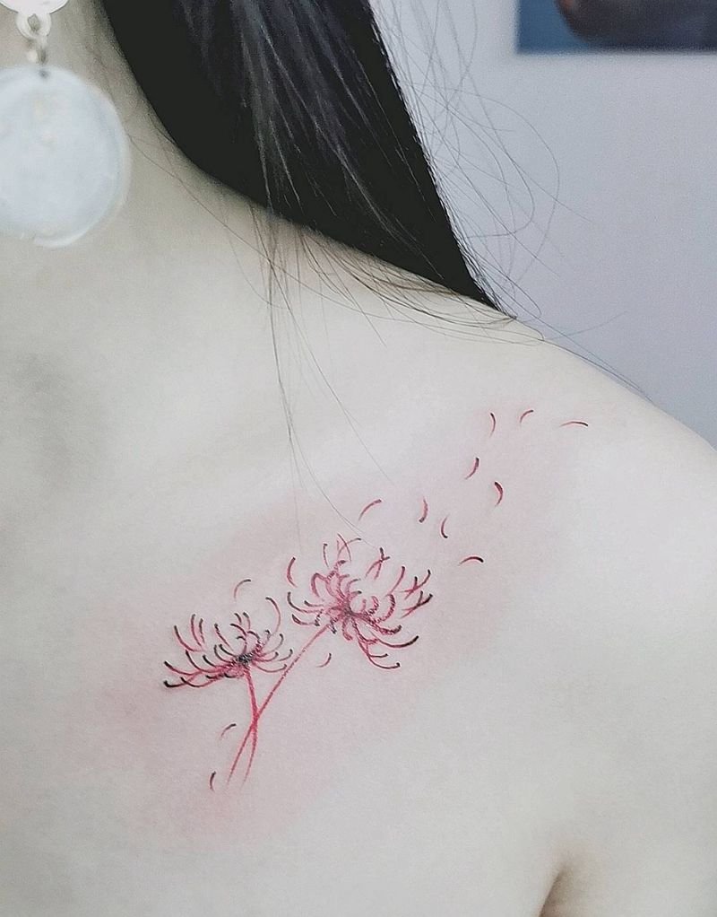 彼岸花纹身图片_胸部手臂水彩老传统纹身图案