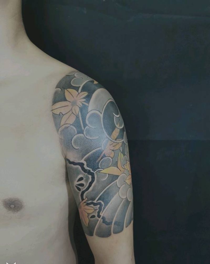 当前位置: 首页 >贵州省遵义市纹身店-粟刺青纹身图案>传统枫叶纹身图片_手臂老传统花臂纹身图案