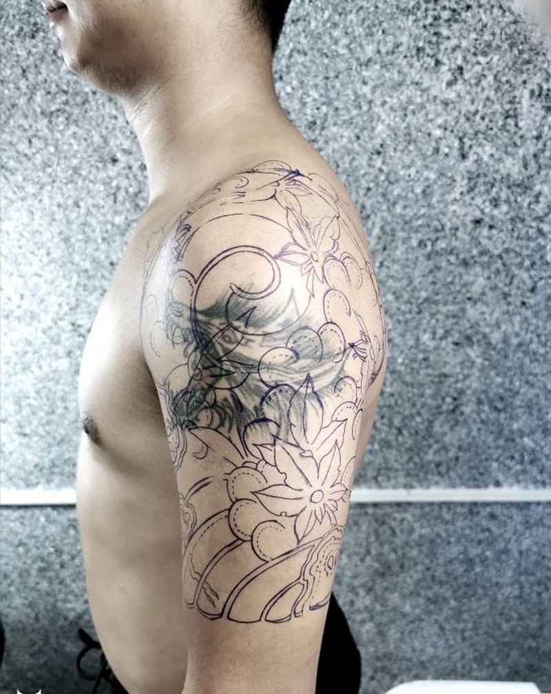 • 纹身吧推荐的披肩图腾半胛纹身图案作品展示
