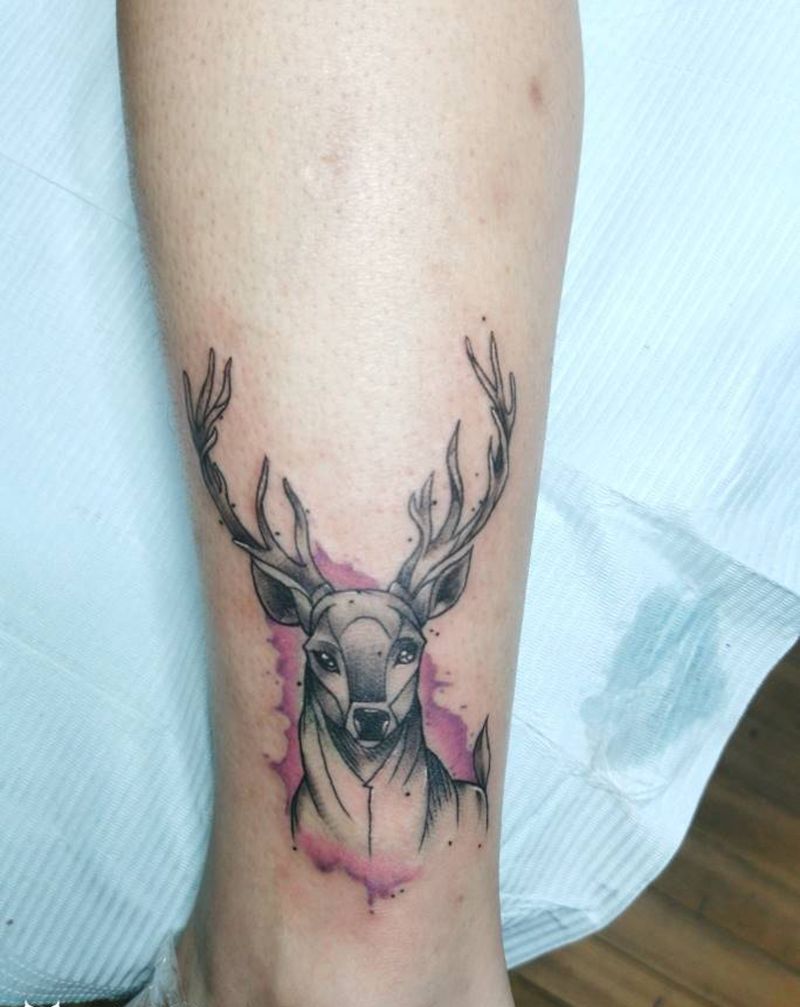 鹿头纹身图片_脚部Old School水彩纹身图案