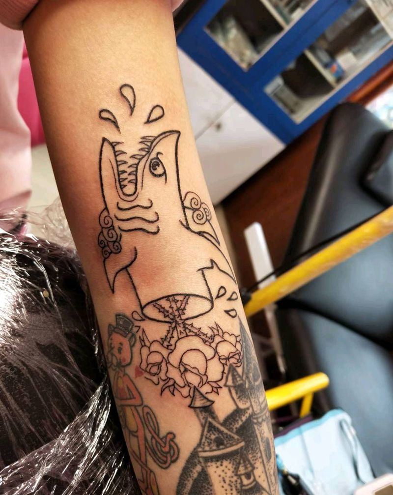 受伤的鲨鱼纹身图片_手部手臂New School点刺纹身图案