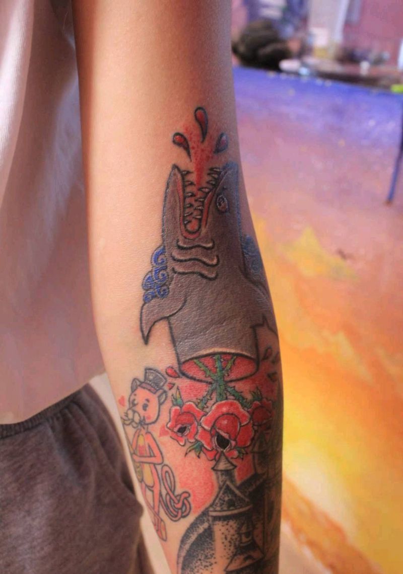 受伤的鲨鱼纹身图片_手部手臂New School点刺纹身图案