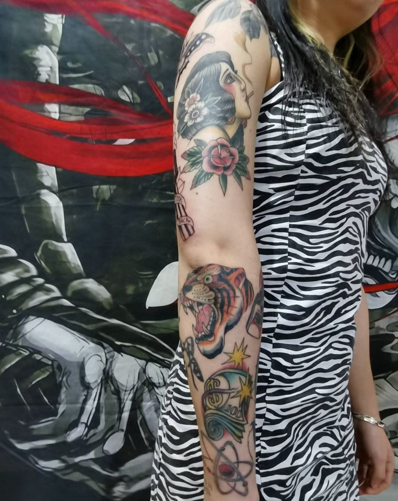 当前位置: 首页 >贵州省毕节市纹身店-毕节纹名堂方石刺青纹身图案>拼接纹身图片_手臂Old School纹身图案