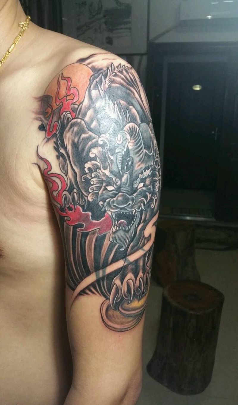 • T网红王老大花腿龙纹身图片_腿部新传统纹身图案