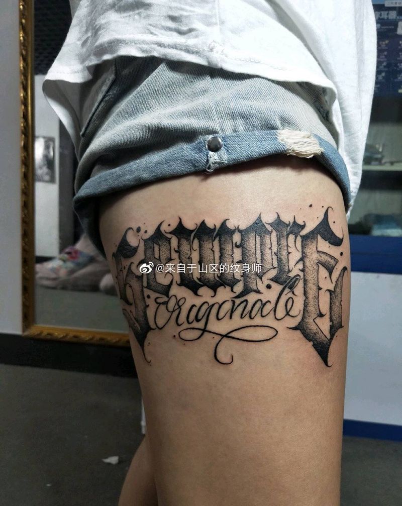 当前位置: 首页 >贵州省黔西南布依族苗族自治州纹身店-嘉木刺青纹身图案>花体字纹身图片_腿部点刺纹身图案