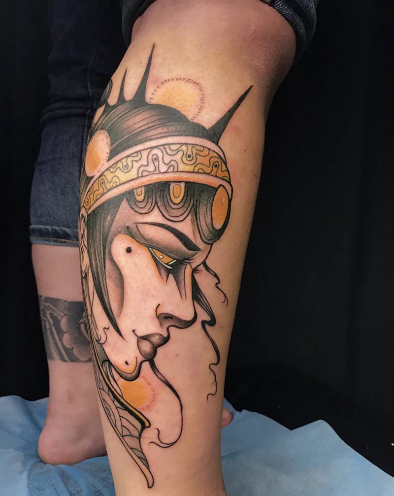 女郎纹身图片_腿部Old School纹身图案