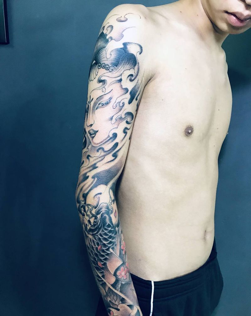 当前位置: 首页 >贵州省毕节市纹身店-纹墨坊刺青纹身图案>花臂纹身图片_手臂新传统纹身图案