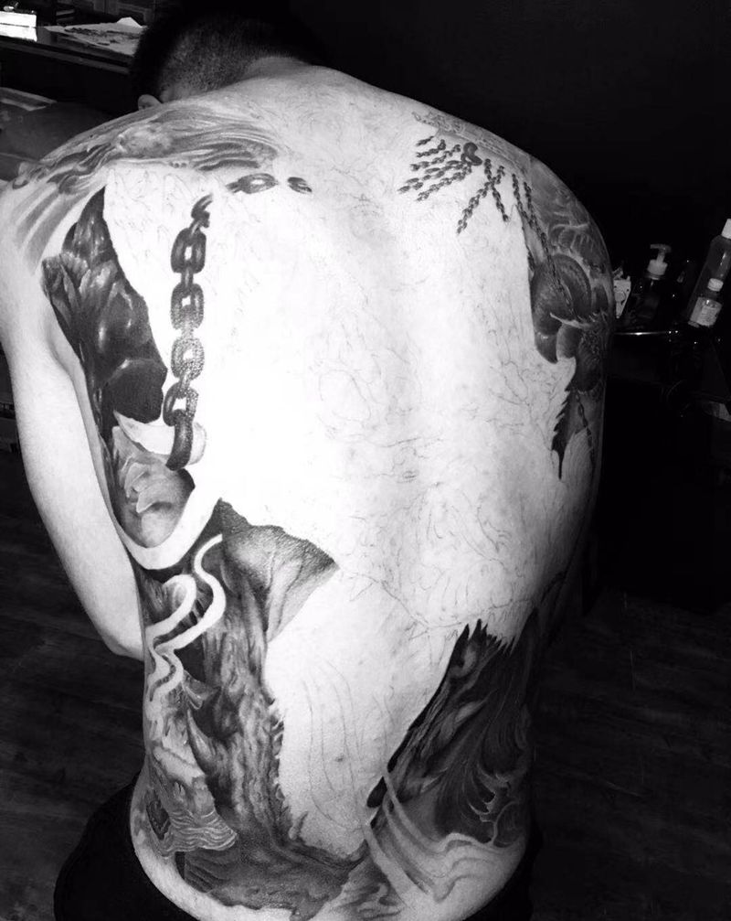 未完九龙拉棺纹身图片_背部欧美写实纹身图案