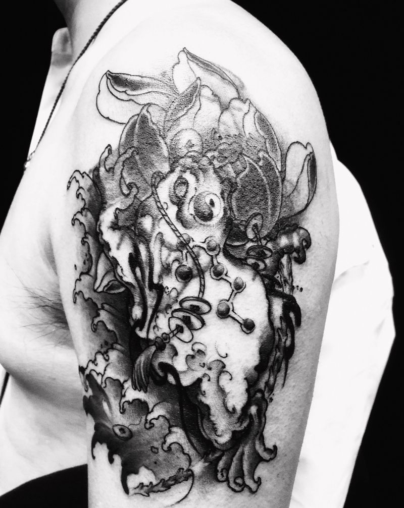 当前位置: 首页 >贵州省黔西南布依族苗族自治州纹身店-暗Tattoo纹身图案>金蟾遮盖未完纹身图片_手臂新传统纹身图案