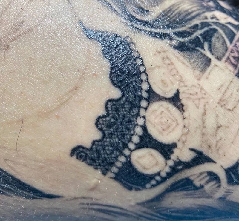 我的眼睛是怎么瞎的纹身图片_腿部欧美写实纹身图案