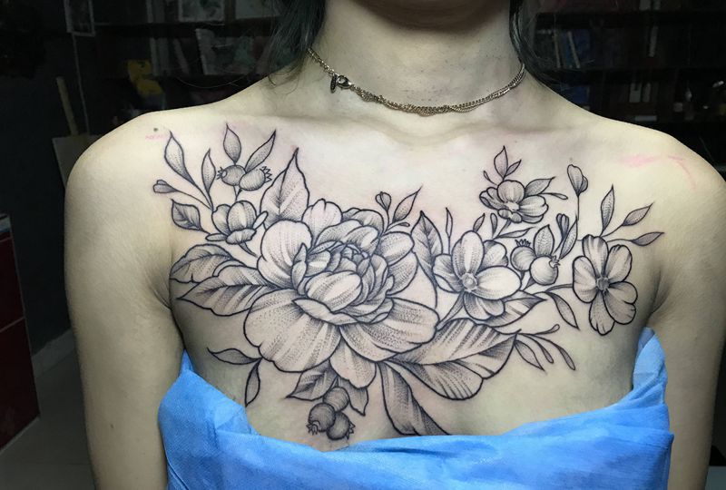 • 女性大花胸纹身_43张霸气漂亮的女性大花胸纹身图案作品
