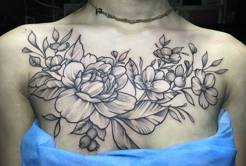 • 女性大花胸纹身_43张霸气漂亮的女性大花胸纹身图案作品