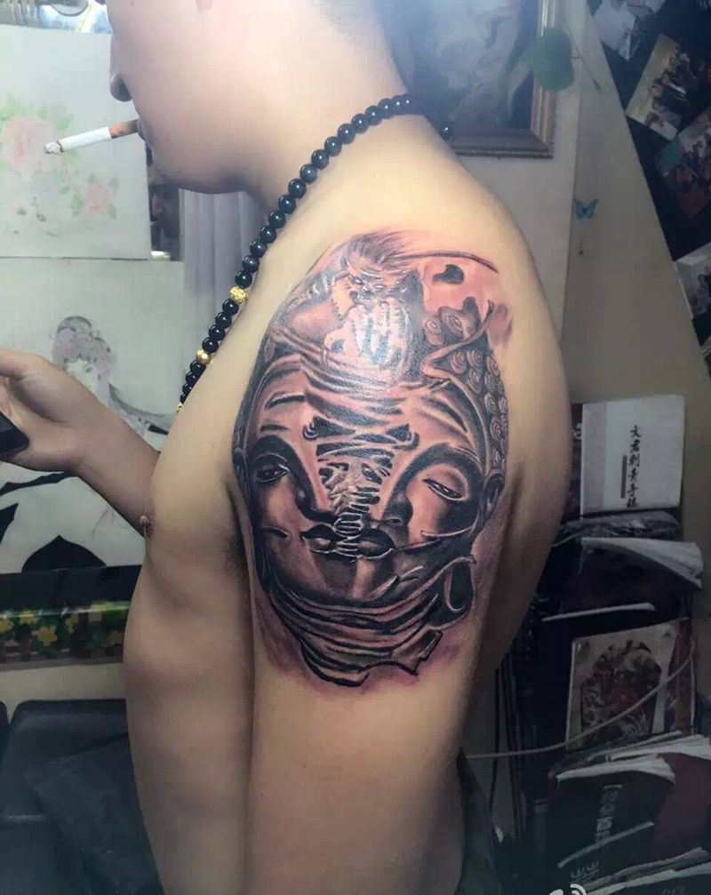 当前位置: 首页 >贵州省安顺市纹身店-权艺堂文身纹身图案>佛魔纹身图片