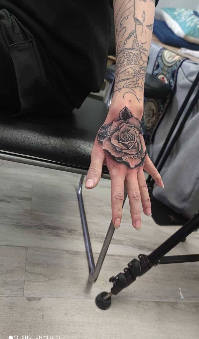 • 手背潮流时尚的玫瑰花眼睛纹身图案