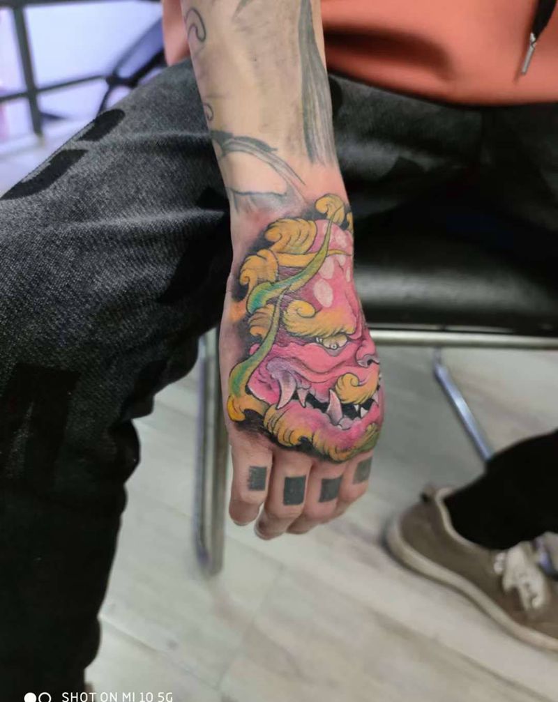 当前位置: 首页 >贵州省安顺市纹身店-权艺堂文身纹身图案>唐狮纹身图片_手部纹身图案
