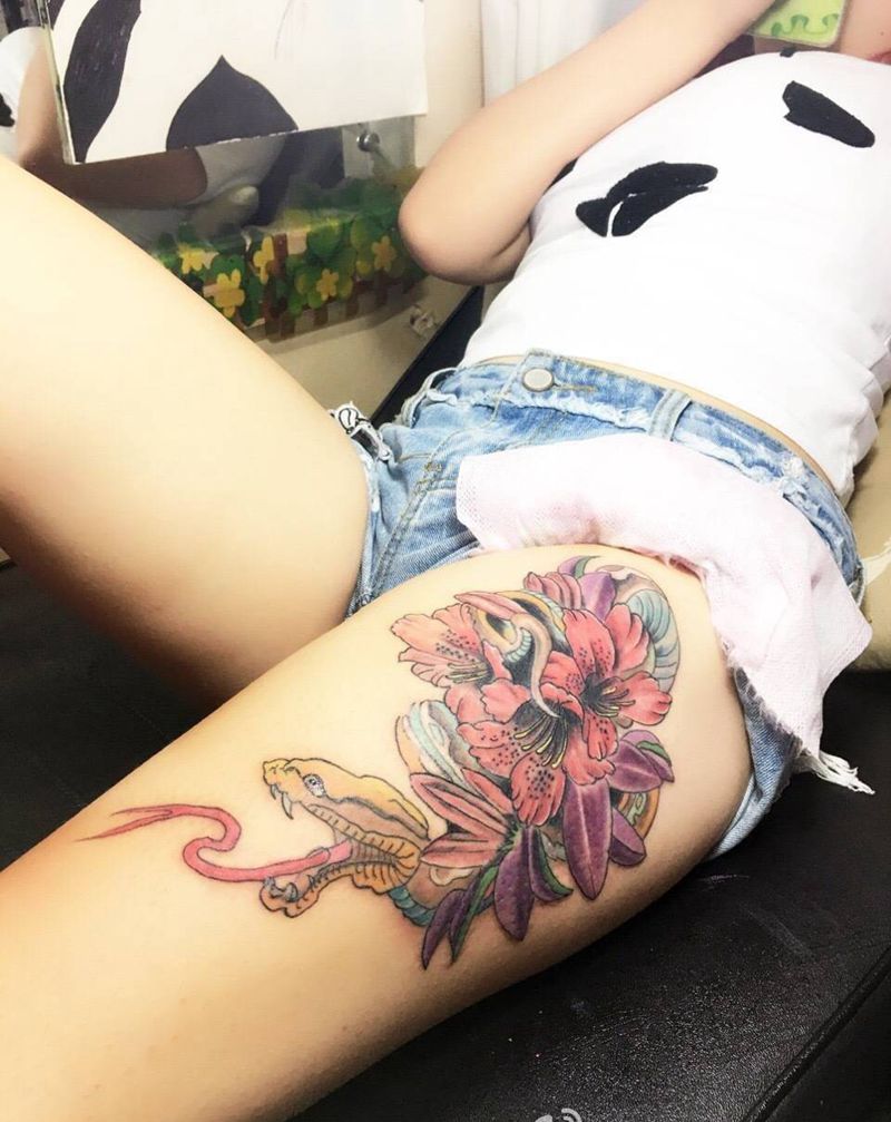 • T网红王老大花腿龙纹身图片_腿部新传统纹身图案
