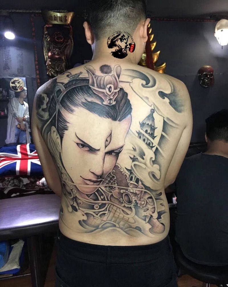 黑灰满背纹身图案