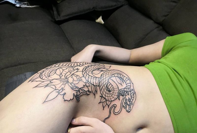 当前位置: 首页 >贵州省铜仁市纹身店-木漓刺青纹身图案>蛇纹身图片_臀部腿部新传统New School纹身图案