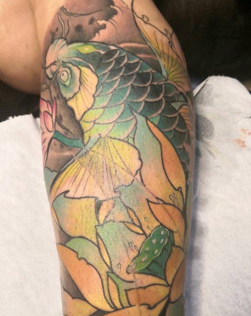当前位置: 首页 >贵州省铜仁市纹身店-木漓刺青纹身图案>锦鲤纹身图片_腿部新传统鱼荷花纹身图案