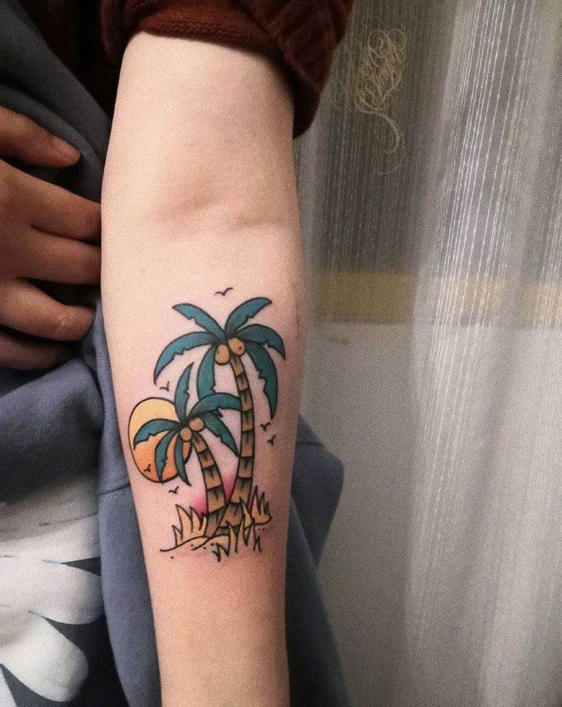椰子树纹身图片_手臂手部Old School椰子树纹身图案